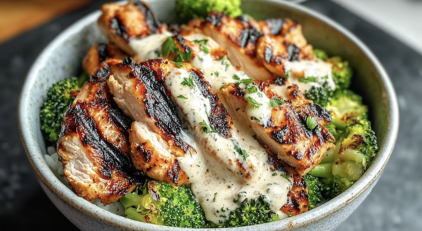 Korean Style Gochujang Grilled Chicken, Steamed White Rice, Roasted Carrots, Chili Garlic Brussels sprouts, Broccoli, Toasted Sesame Seeds, Side of Spicy Asian Greek Yogurt Sauce