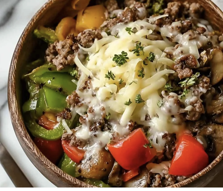 Sloppy Joe Seasoned Ground Turkey, Grilled Red Bell Peppers and Onion, White Rice, Light Provolone Cheese, Broccoli, Corn